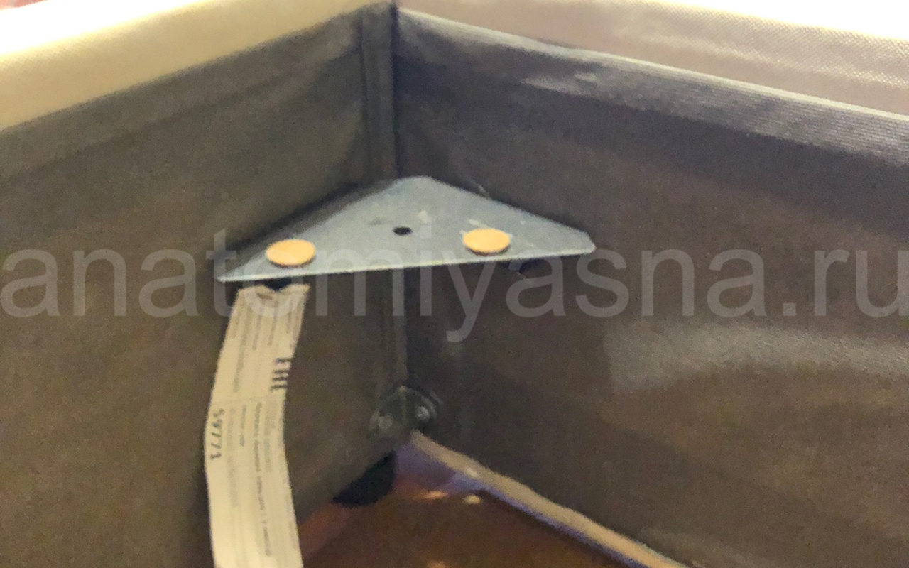Кровать в обивке: Велюр Velutto 24. Быстро поднимается основание, 2 ящика для белья. Все прошито, нареканий нет. Пользуемся 4 месяца. Спасибо!
