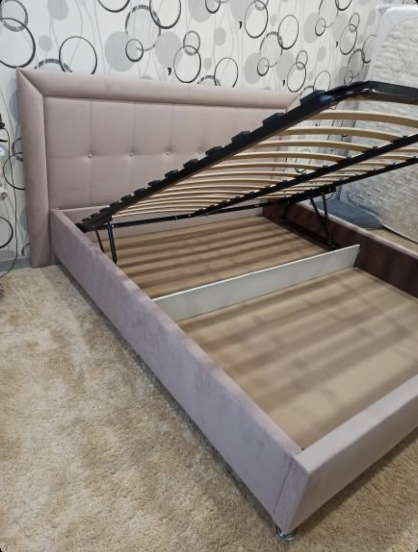 Отличная кровать, смотрится красиво и стильно. Главное преимущество - высокая царга - кроватей с таким вместительным ящиком практически нет. Исполнение, фурнитура и подьемный механизм высокого качества. Широкий выбор цветовой плитры и материала кровати. У нас велюр Тедди цвет белый (образцы ткани Тедди представлены в шоу-рум). Обивка боковины съемная - удобно для чистки и стирки. Доставка и быстрая сборка в оговоренные сроки.